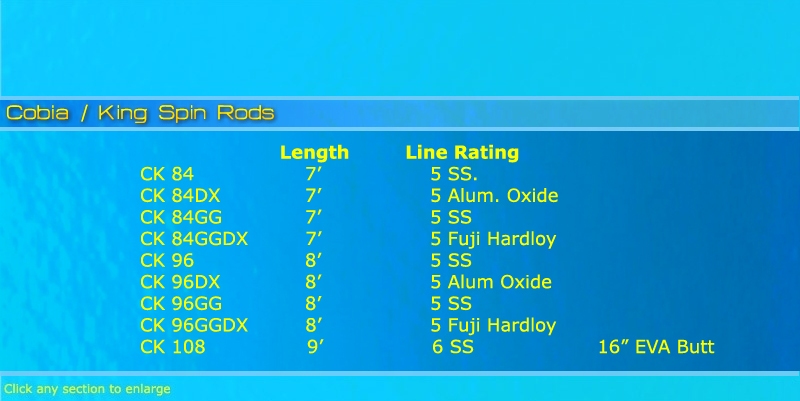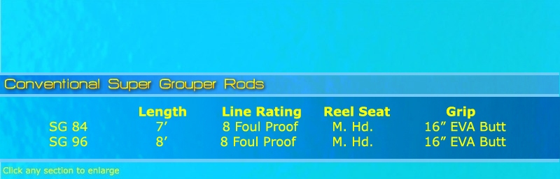 EVA foam grips and either rubber butts or nylon graphite gimball unless otherwise stated.