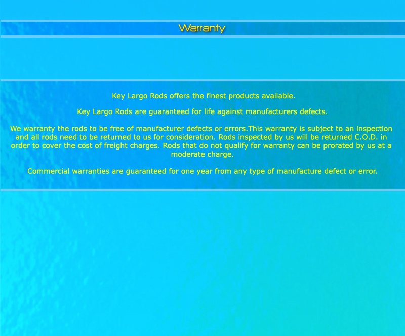 Key Largo Rods are guaranteed for life against manufacturers defects.