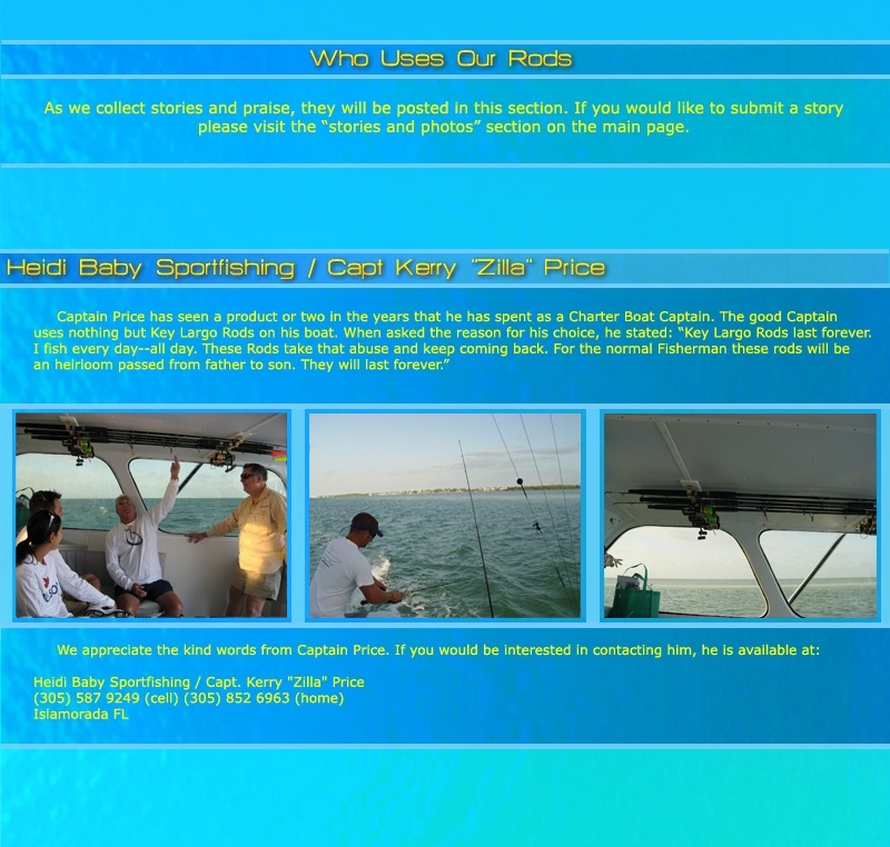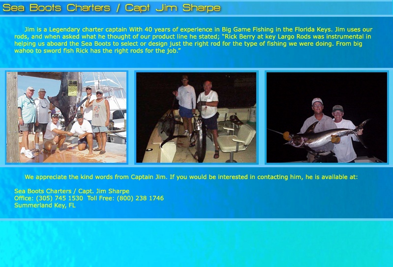 rods, and when asked what he thought of our product line he stated; “Rick Berry at key Largo Rods was instrumental in